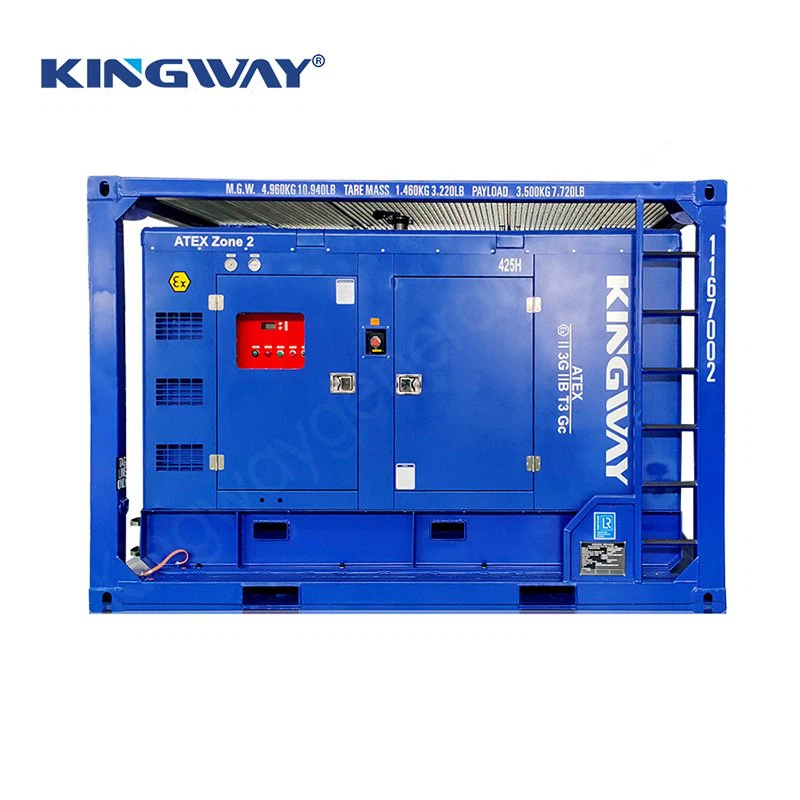 Seturi de generatoare cu motor diesel pentru aplicații în zone periculoase (Zona 2) montate în carcasă cu cadru antiderapant certificat DNV 2.7-1, care produce un compresor de aer rezistent la explozie de 420 CFM cu ieșire de presiune de 150 Psi.